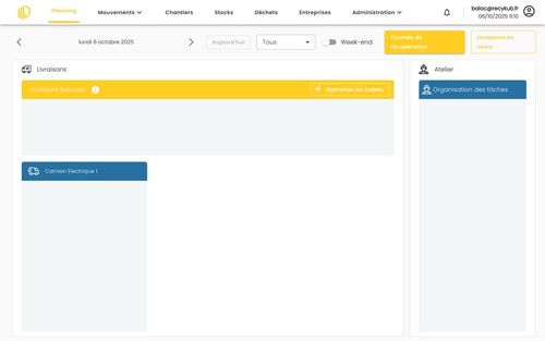 Un tableau de bord ultra-simple pour gérer vos matériaux, livraisons, déchets, conformité réglementaire et performances environnementales.